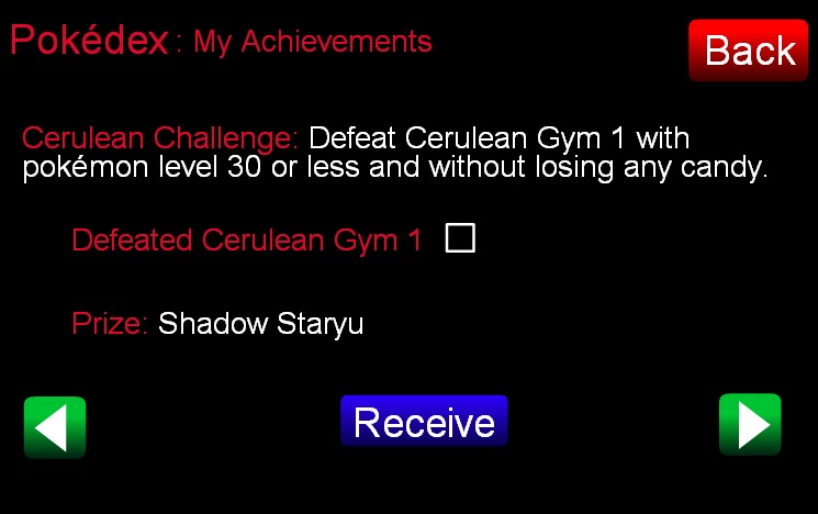 Nos archievements você devera completar as missões para ganhar premio como Pokemons Shinys ou Shadows e Avatares.